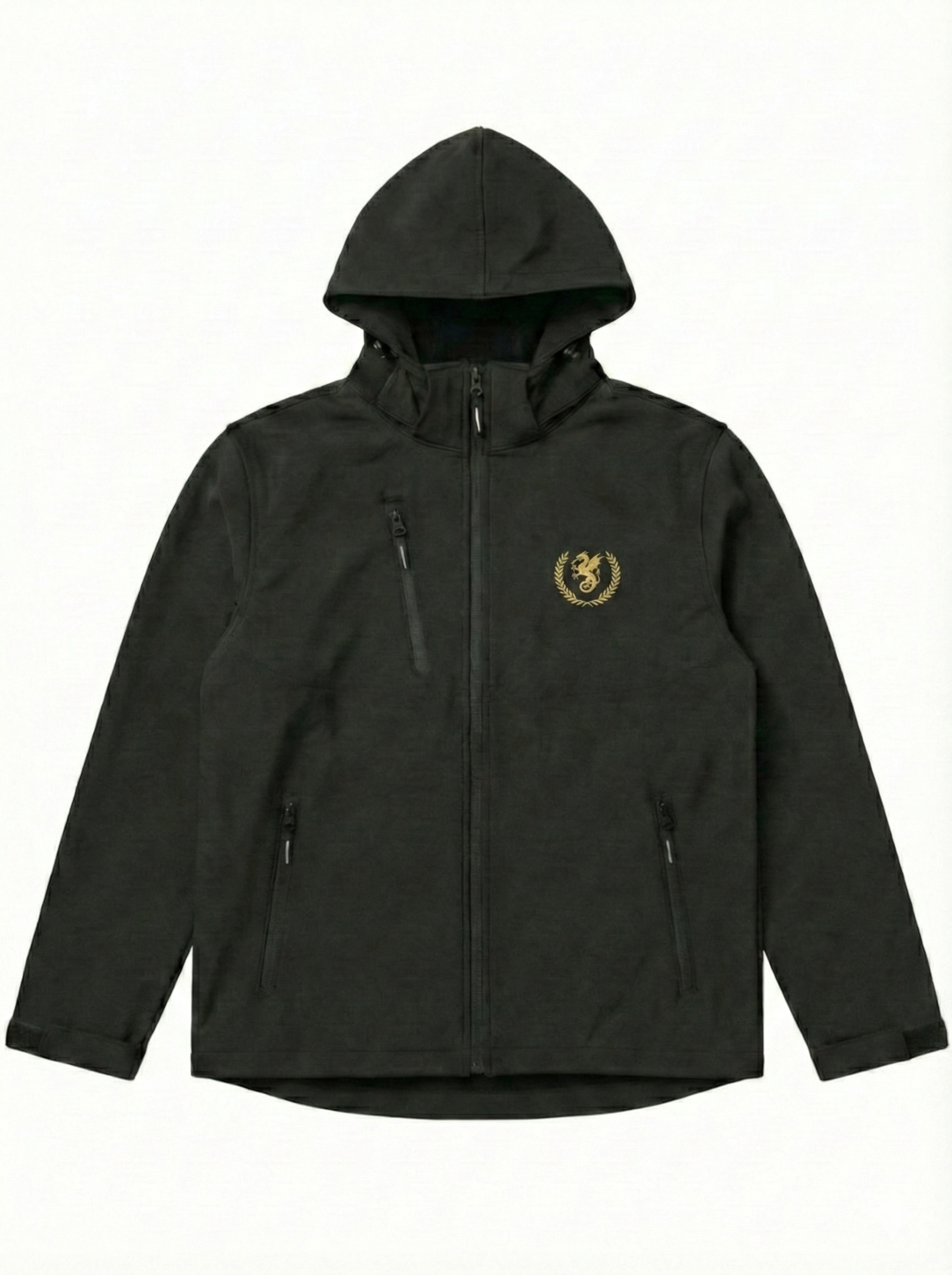 Concebido para quem exige qualidade e resistência, este casaco de alto desempenho é a camada exterior ideal para os dias de jogo ou para o dia-a-dia. Com um corte moderno e funcional, destaca-se pelo bordado premium do Dragão com coroa de louros, aplicado a fio dourado no peito, garantindo um acabamento de luxo sobre o fundo preto mate.