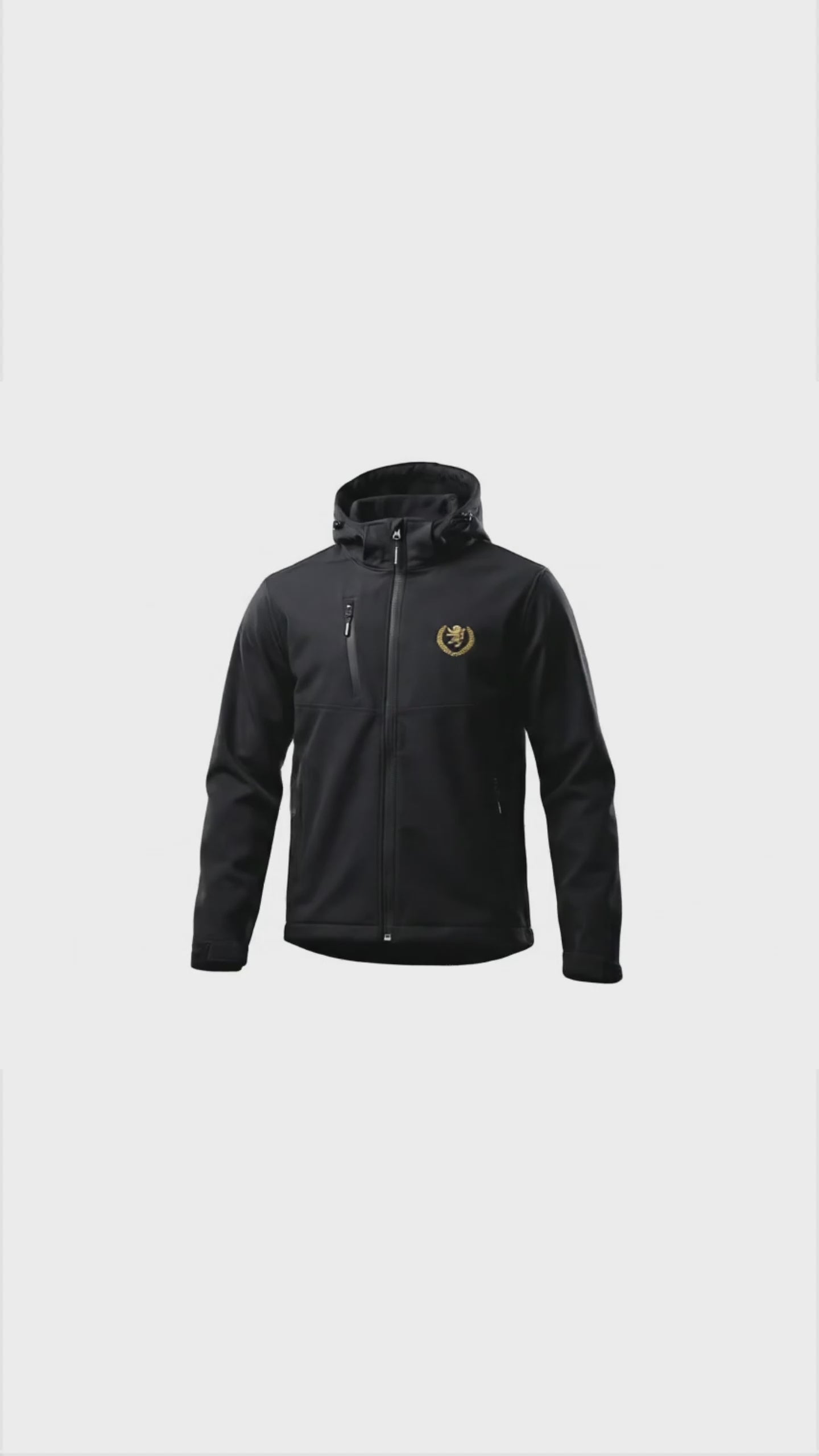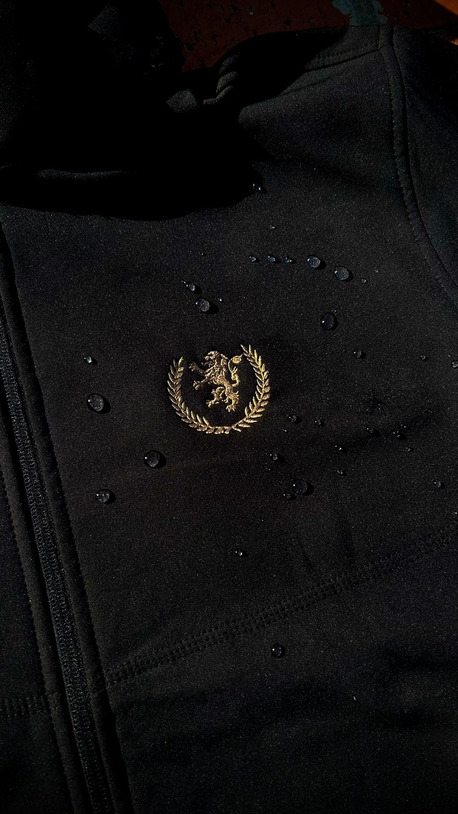 Concebido para quem exige qualidade e resistência, este casaco de alto desempenho é a camada exterior ideal para os dias de jogo ou para o dia-a-dia. Com um corte moderno e funcional, destaca-se pelo bordado premium do Leão Rampante com coroa de louros, aplicado a fio dourado no peito, garantindo um acabamento de luxo sobre o fundo preto mate.