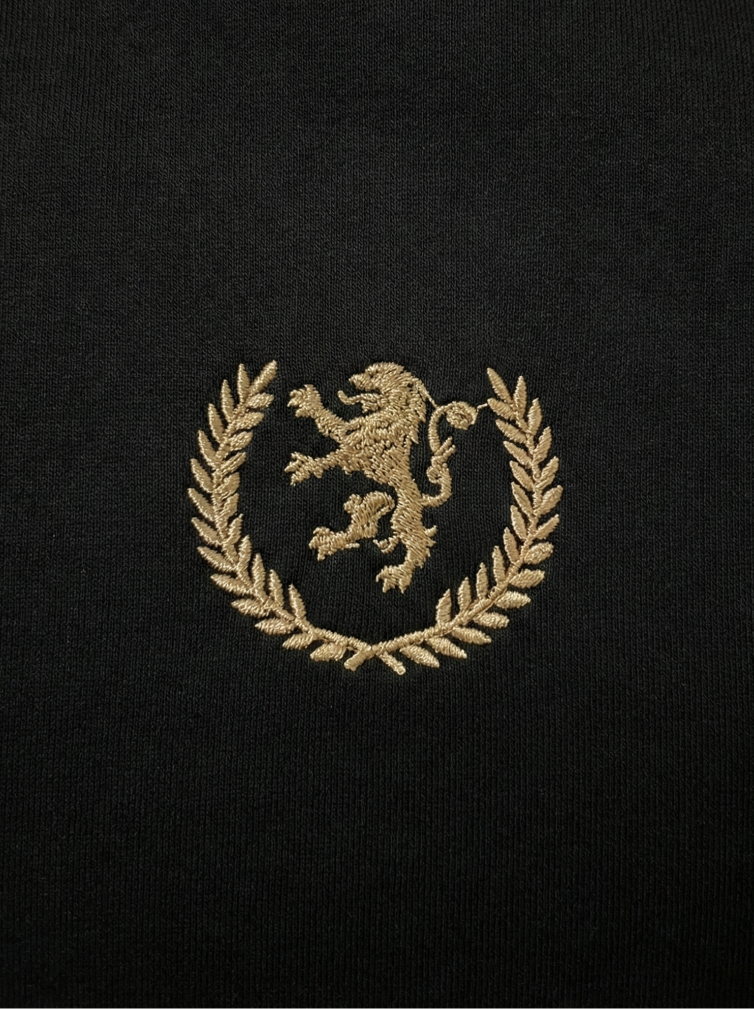 -> Detalhe Exclusivo: Bordado de alta definição "Leão Rampante & Coroa de Louros" em dourado.