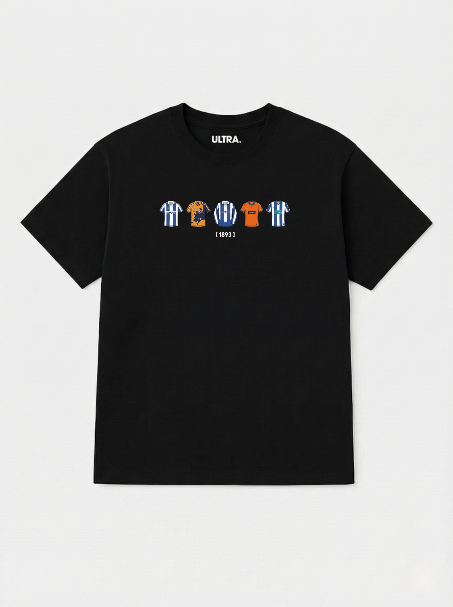 A t-shirt “De Volta às Origens FC Porto” é uma homenagem à mística inigualável do Futebol Clube do Porto. Com um design gráfico exclusivo que reúne 5 camisolas retro lendárias e a data que tudo iniciou, 1893, esta peça transporta-te para as grandes conquistas nacionais e internacionais de um clube que orgulha a Invicta.