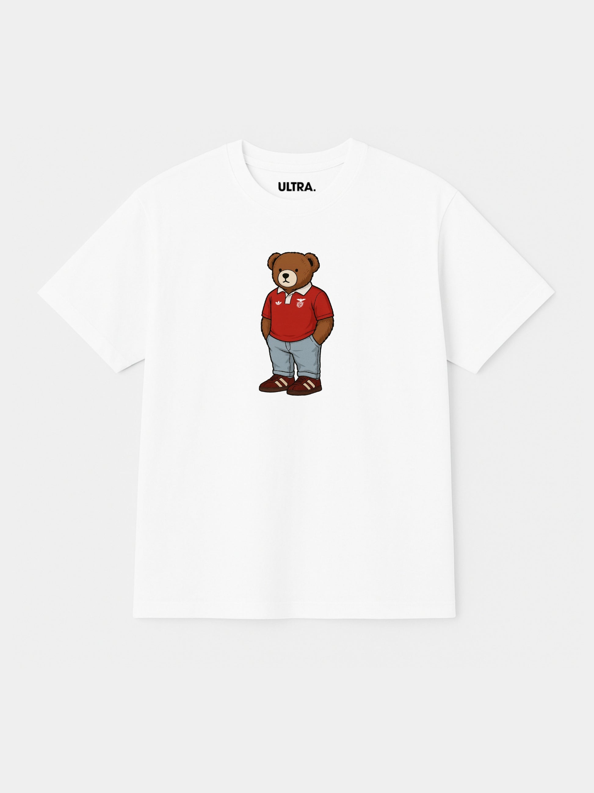 A t-shirt Ultra Red Bear é uma peça vibrante que une paixão clubística e cultura ultra de forma criativa.
