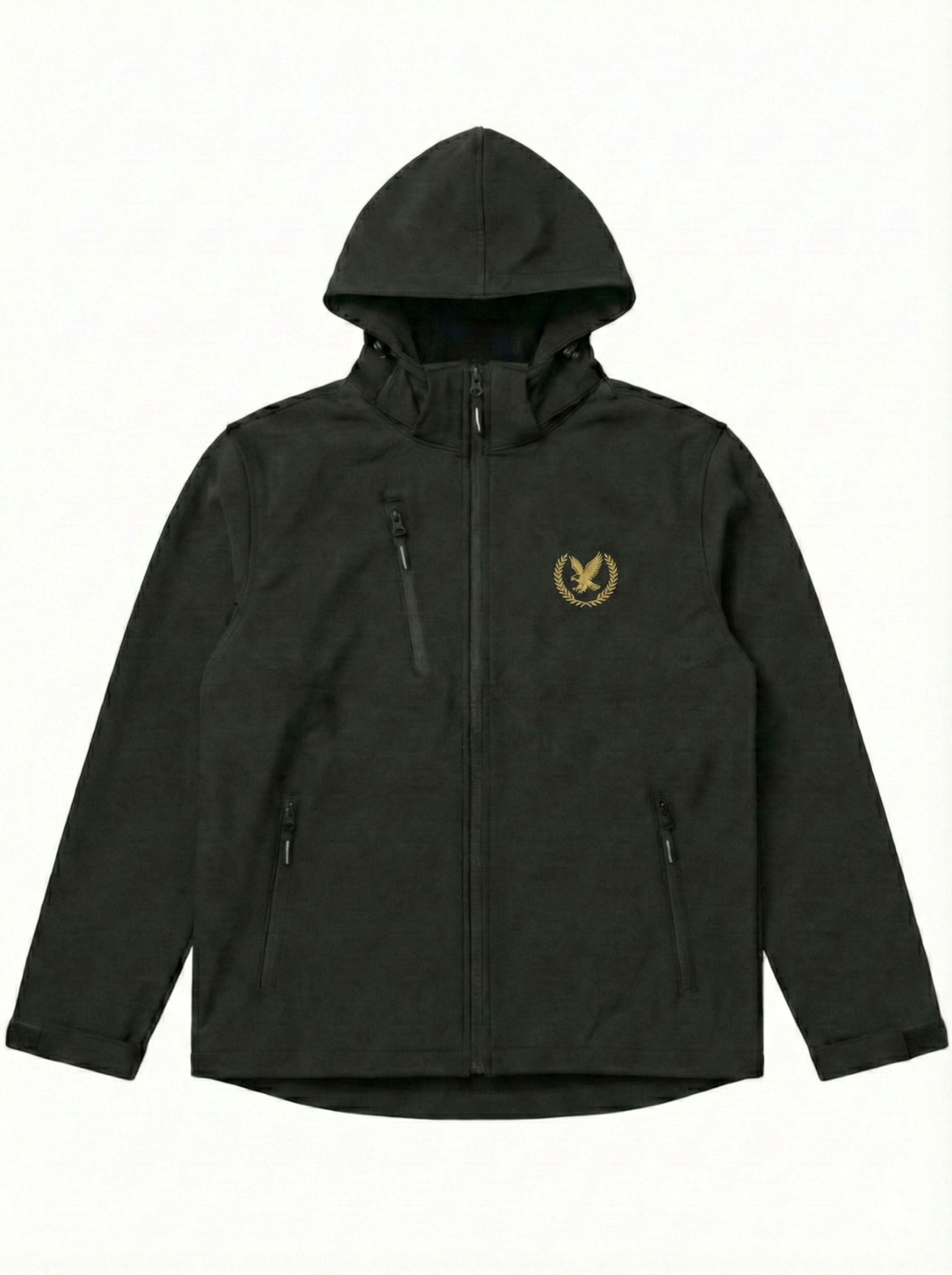Concebido para quem exige qualidade e resistência, este casaco de alto desempenho é a camada exterior ideal para os dias de jogo ou para o dia-a-dia. Com um corte moderno e funcional, destaca-se pelo bordado premium da Águia com coroa de louros, aplicado a fio dourado no peito, garantindo um acabamento de luxo sobre o fundo preto mate.